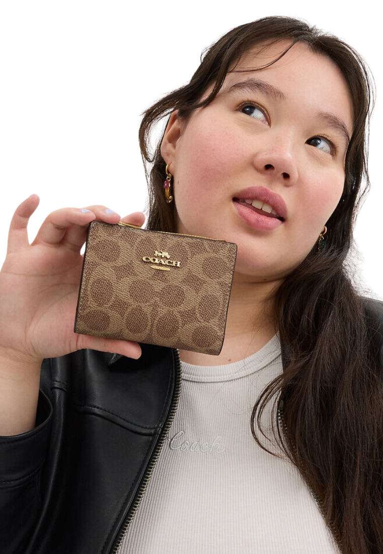 Coach Billfold Wallet Signature Canvas In Tan Brown CW803