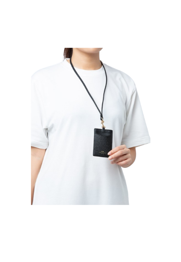 Coach Crossgrain Leather 57311 Id Lanyard In Black
