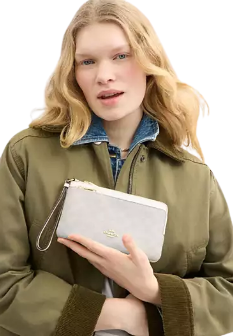 Coach Double Zip Signature Canvas Wallet In White Chalk CX161