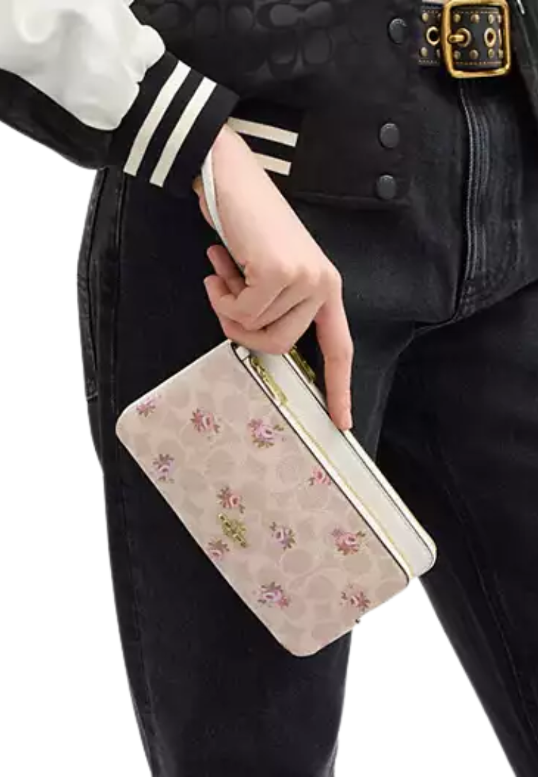 Coach Double Zip Wallet Signature Canvas With Floral Print In Sand Multi Car09