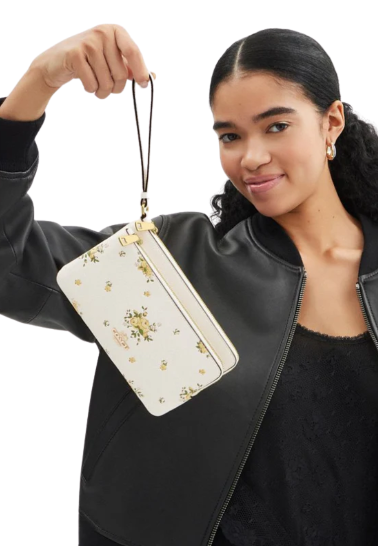 Coach Double Zip Wallet With Floral Print In Chalk Multi Cay51