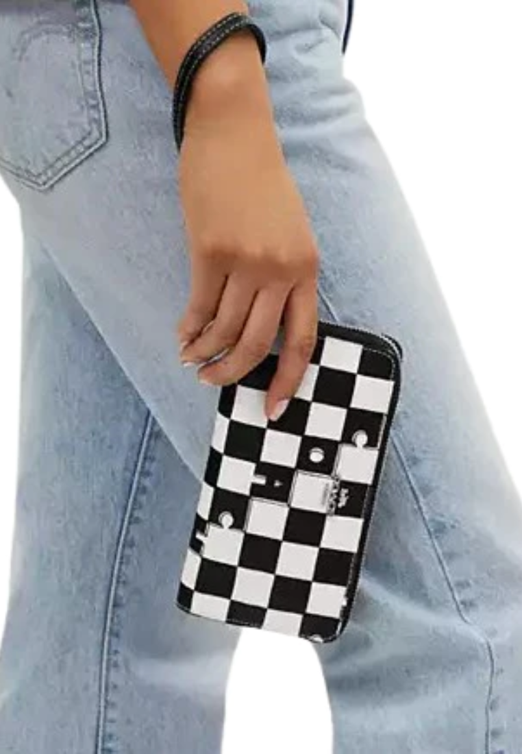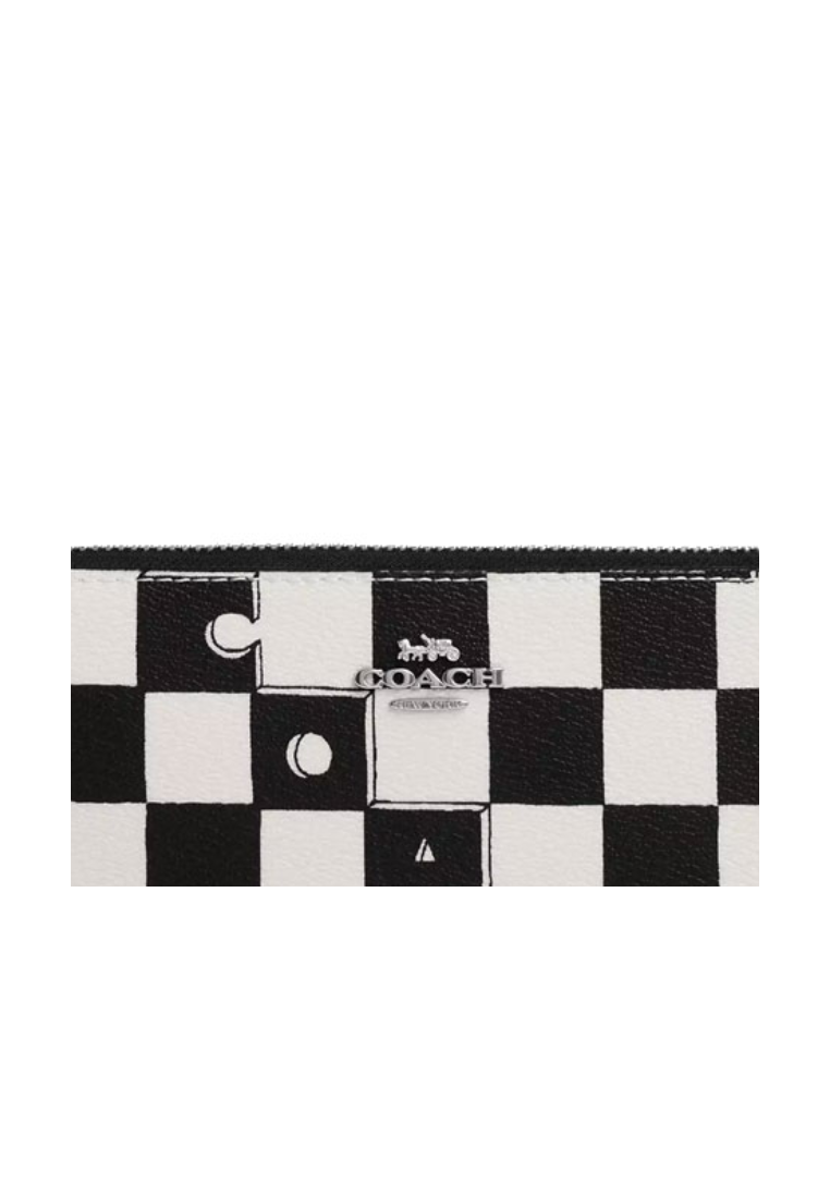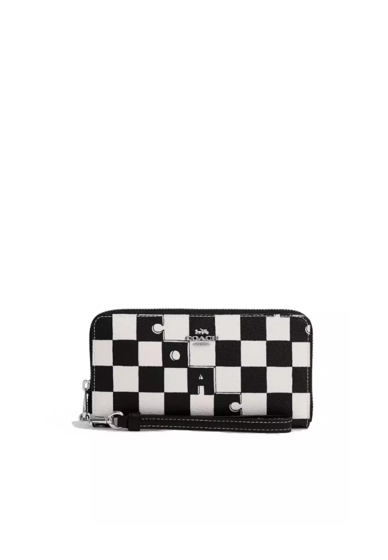 Coach Long Zip Around Wallet With Checkerboard Print In Black Chalk CR622