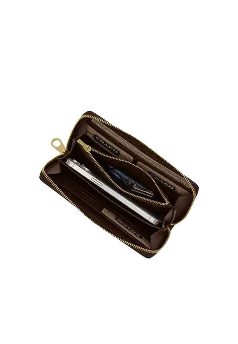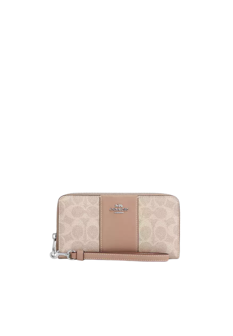 Coach Long Zip Around Wallet Signature Canvas With Stripe In Taupe CW947