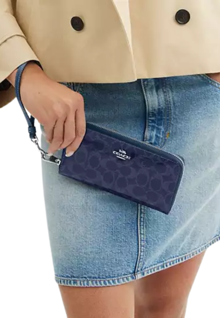 Coach Long Zip Wallet Signature Canvas In Dark Denim Cao78
