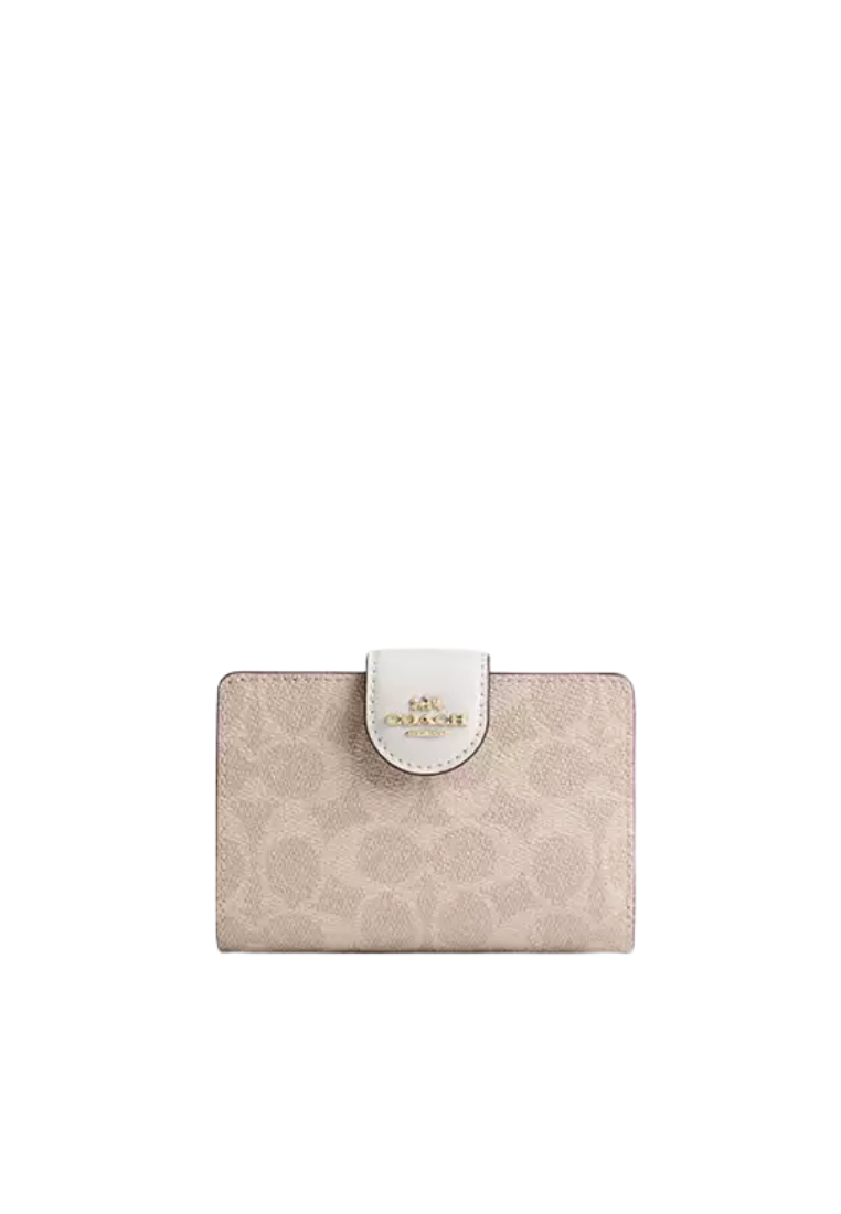 Coach Medium Corner Zip Signature Canvas Wallet In Sand Chalk CW786