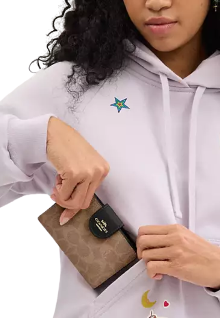 Coach Medium Corner Zip Signature Canvas Wallet In Tan Black CW786