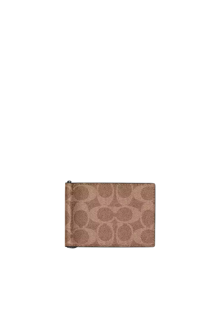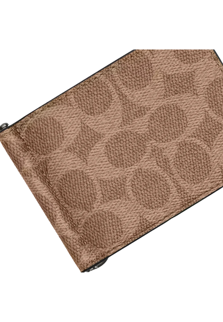 Coach Slim Money Clip Wallet Billfold In Tan Black CY059