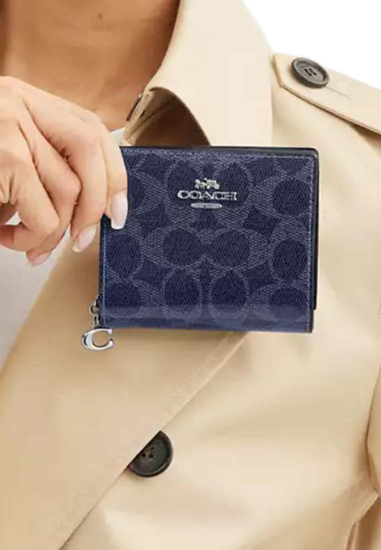 Coach Snap Wallet Signature Canvas In Dark Denim Cap13