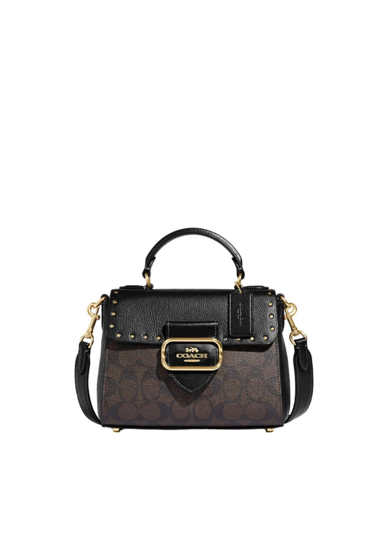 Coach Morgan Top Handle Satchel CF322 With Colorblock Signature Canvas With Rivets In Brown Black Multi