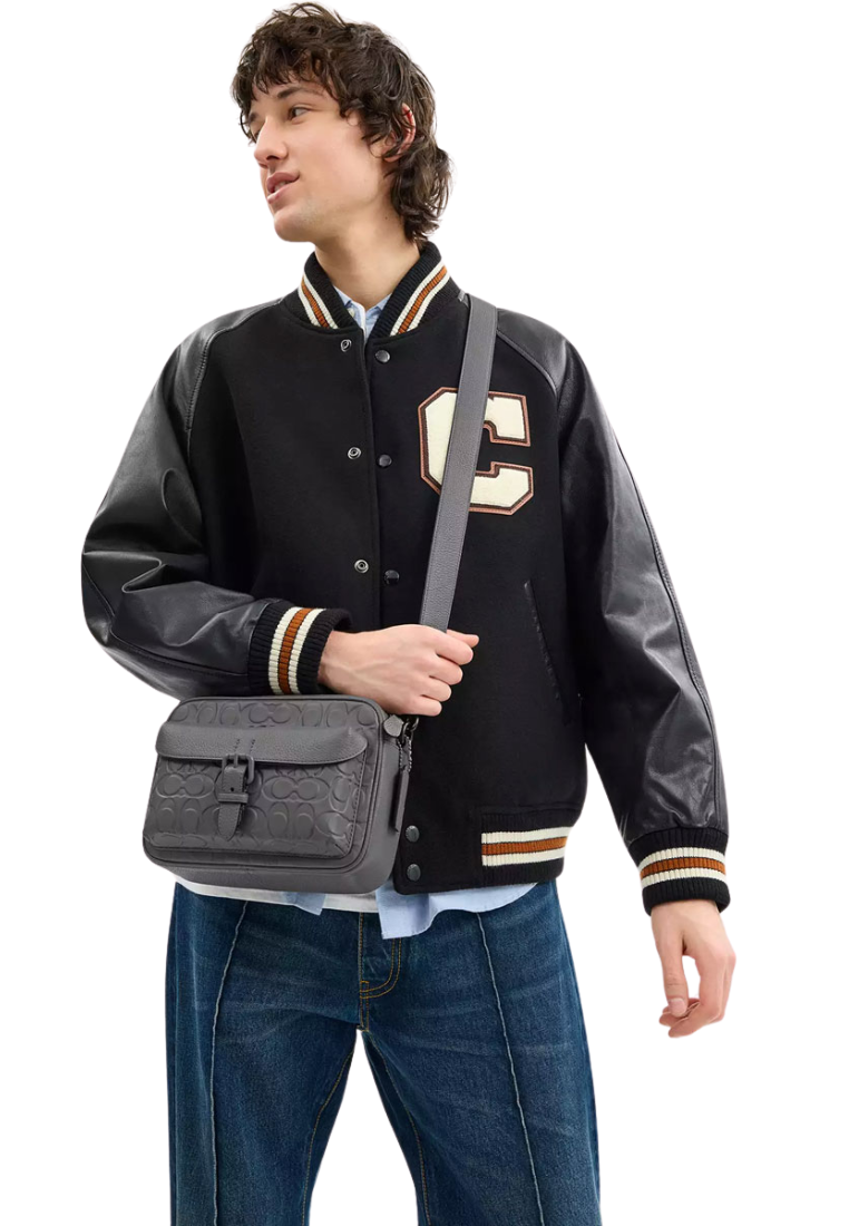 Coach Warner Crossbody Bag Signature Leather In Charcoal Caj83