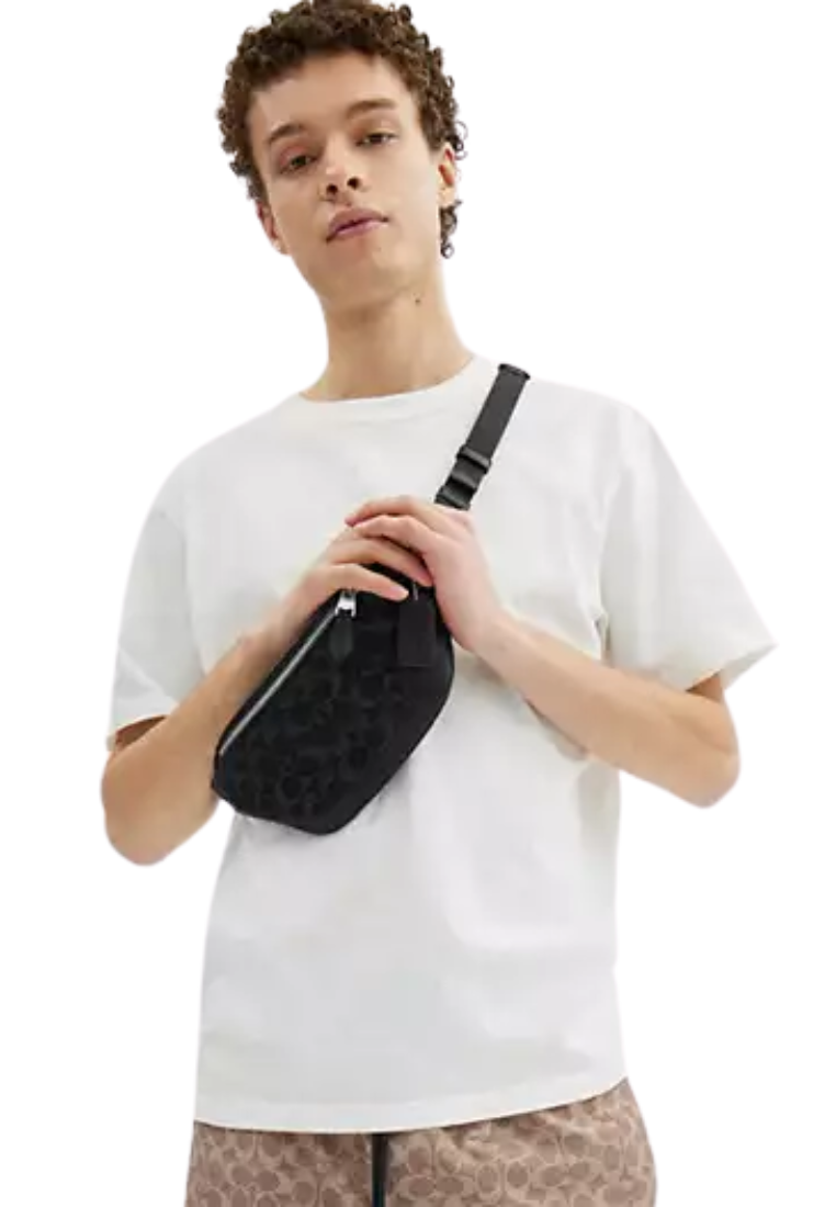 Coach Warren Mini Belt Bag Signature Denim In Black CAJ43