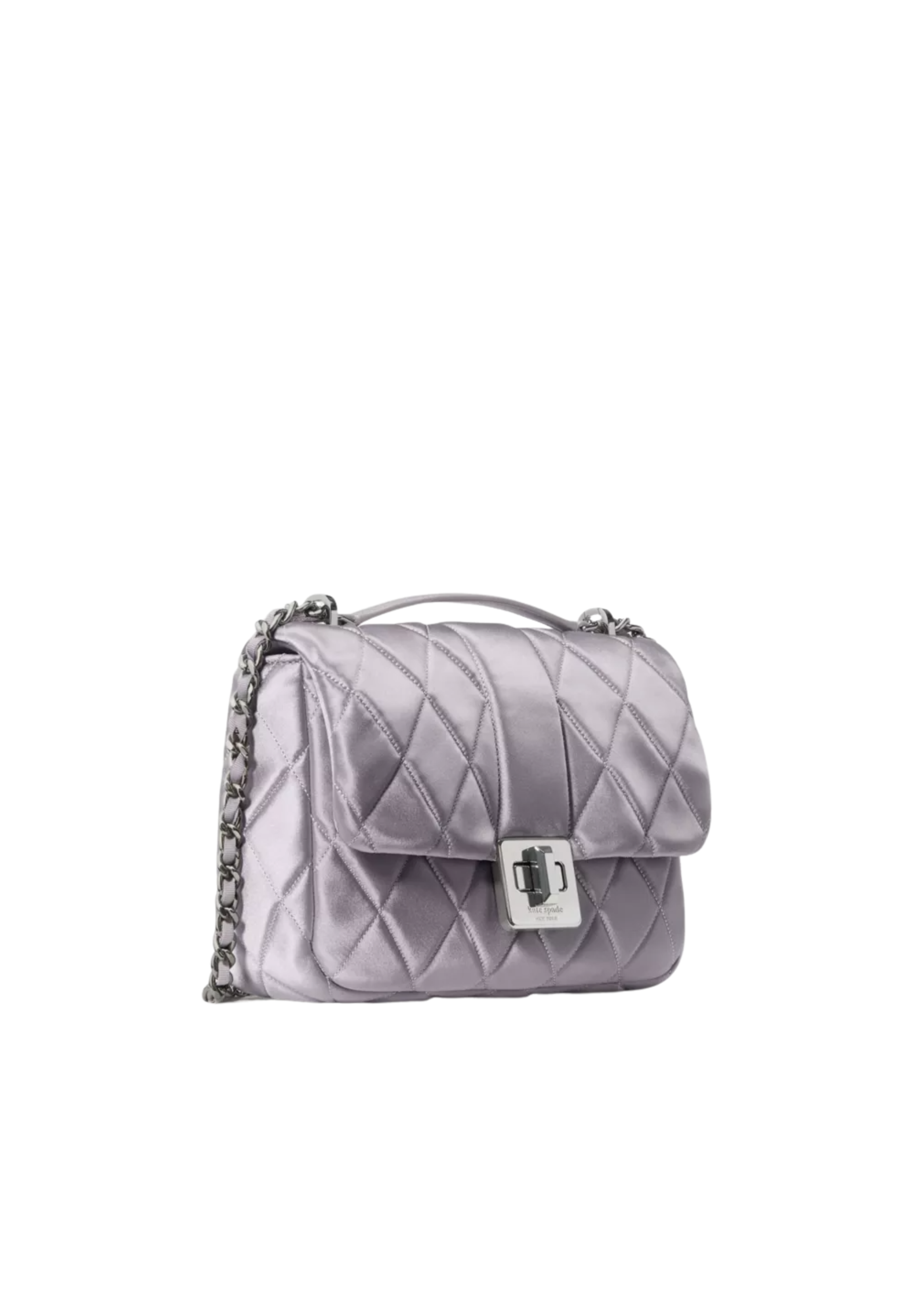 Kate Spade Carey Quilted Satin Small Flap Shoulder Bag In Gravel Grey KN217
