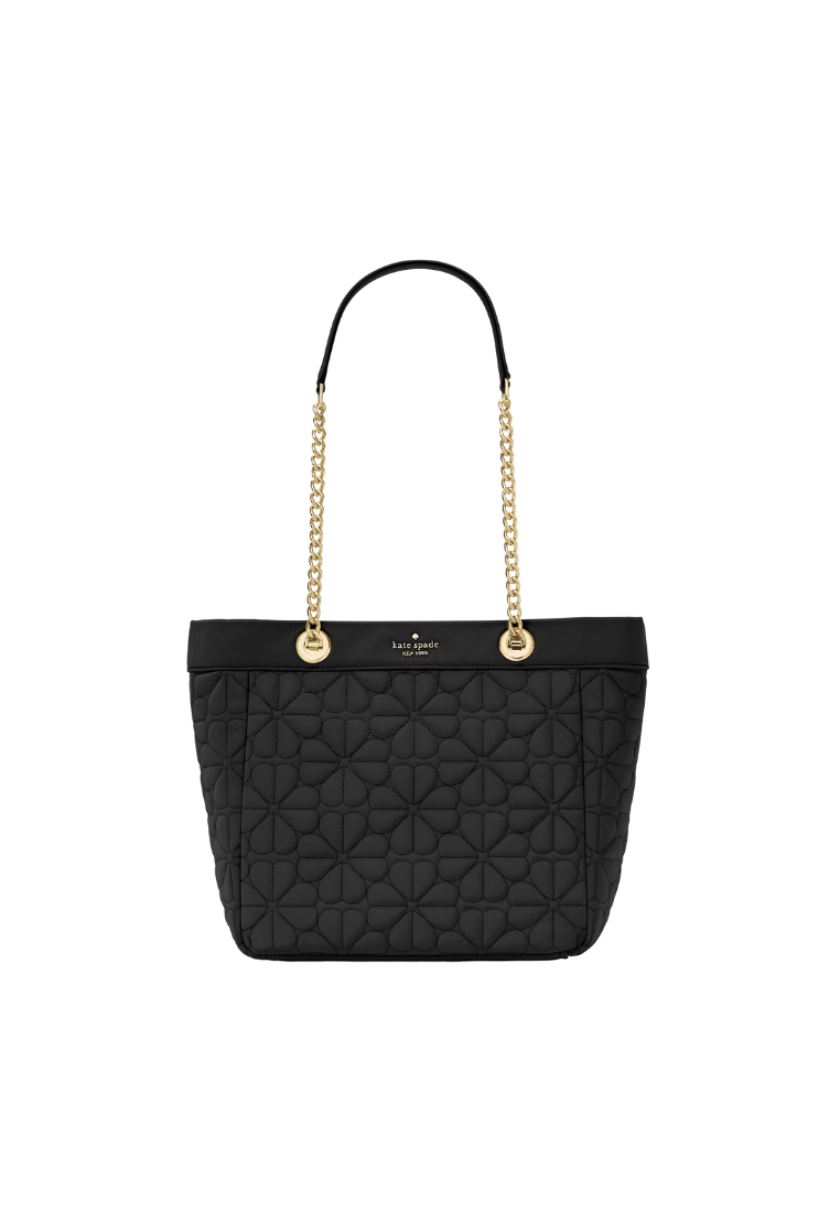 Kate Spade Flower Quilted Fabric Medium Tote Bag In Black KK156