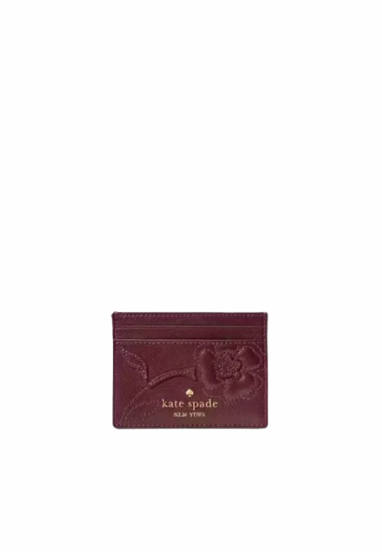 Kate Spade Madison Floral Applique Small Slim Card Case In Dark Merlot KL871