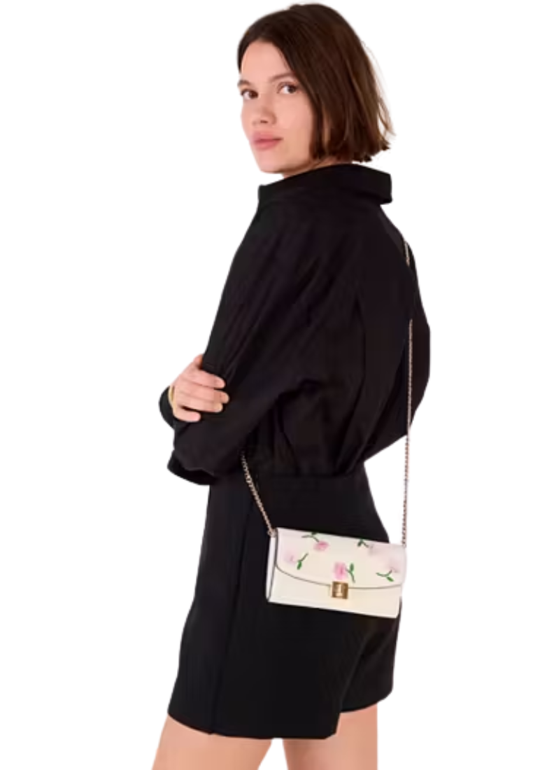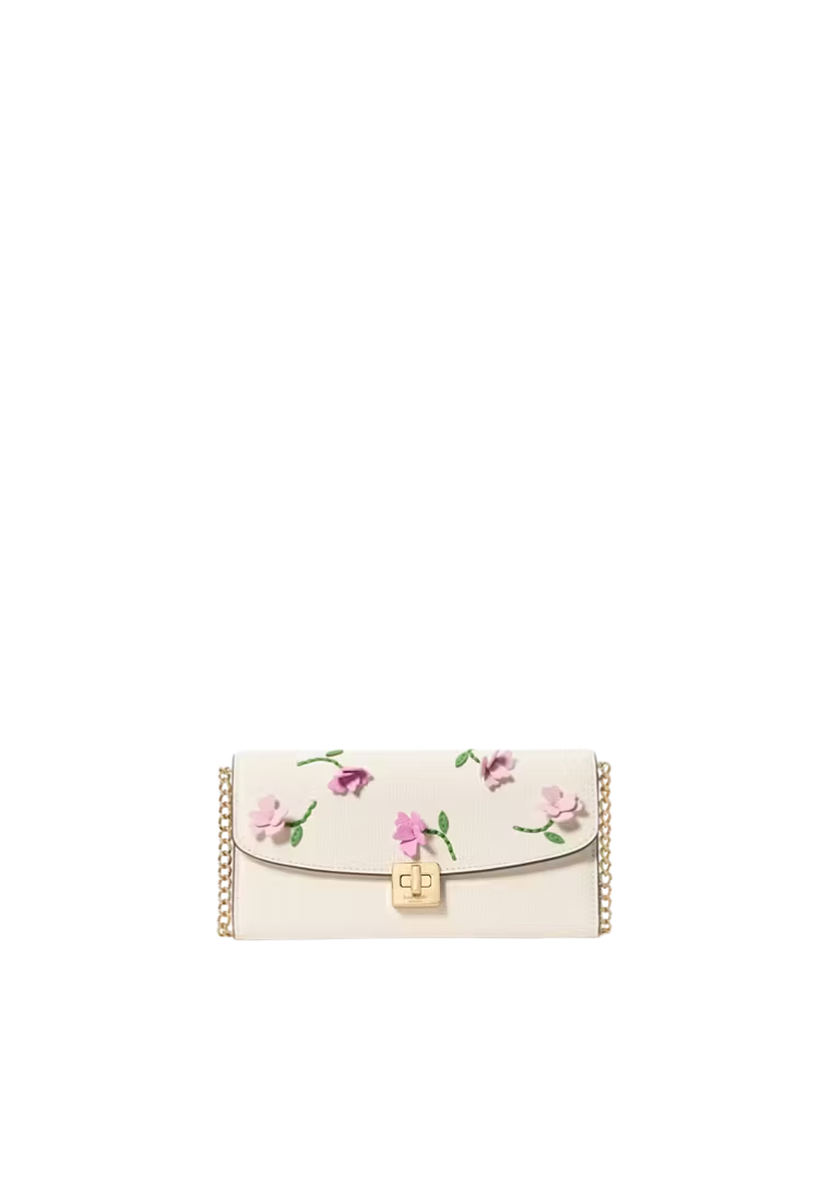 Kate Spade Phoebe Floral Applique Turnlock Wallet On Chain In Meringue Multi KK251