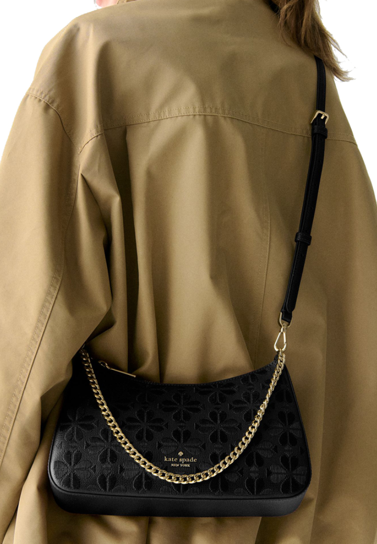 Kate Spade Spade Flower Embroidered Medium Crossbody Bag Convertible In Black KL955
