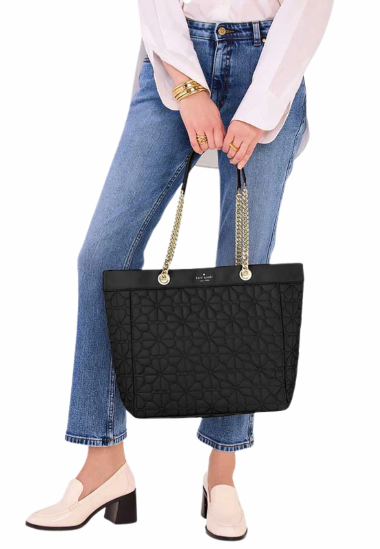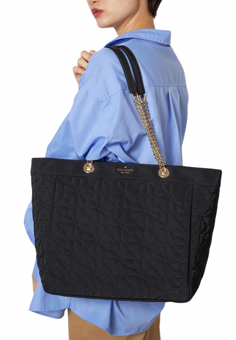 Kate Spade Spade Flower Quilted Fabric Xl Tote Bag In Black KK074