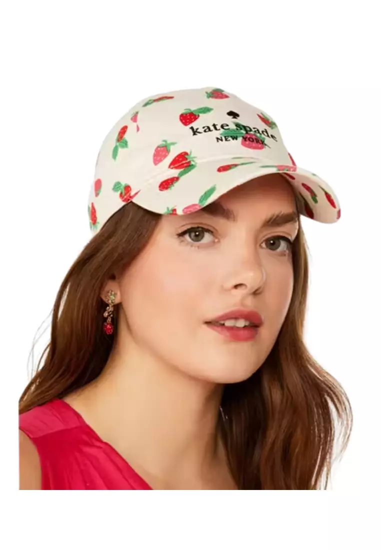 Kate Spade Tossed Strawberry Printed Baseball Cap In Cream KS1004359