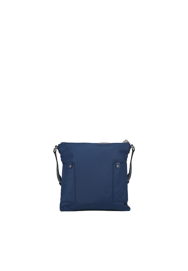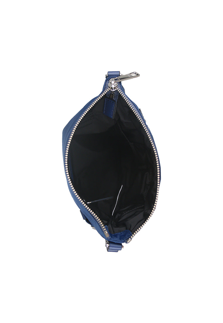 Flat nylon swingpack crossbody with leather trim