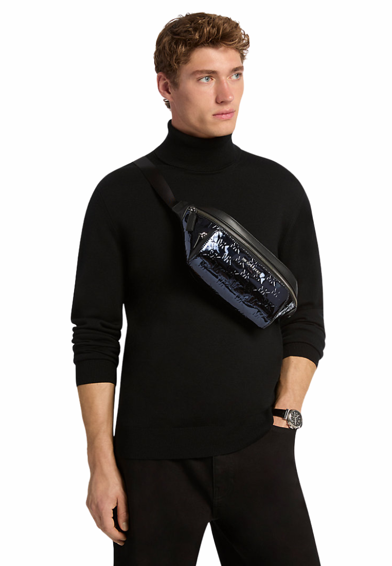 Michael Kors Cooper Medium Metallic Logo Debossed Utility Sling Bag In Navy Blue Marine 37F5LCOY9O
