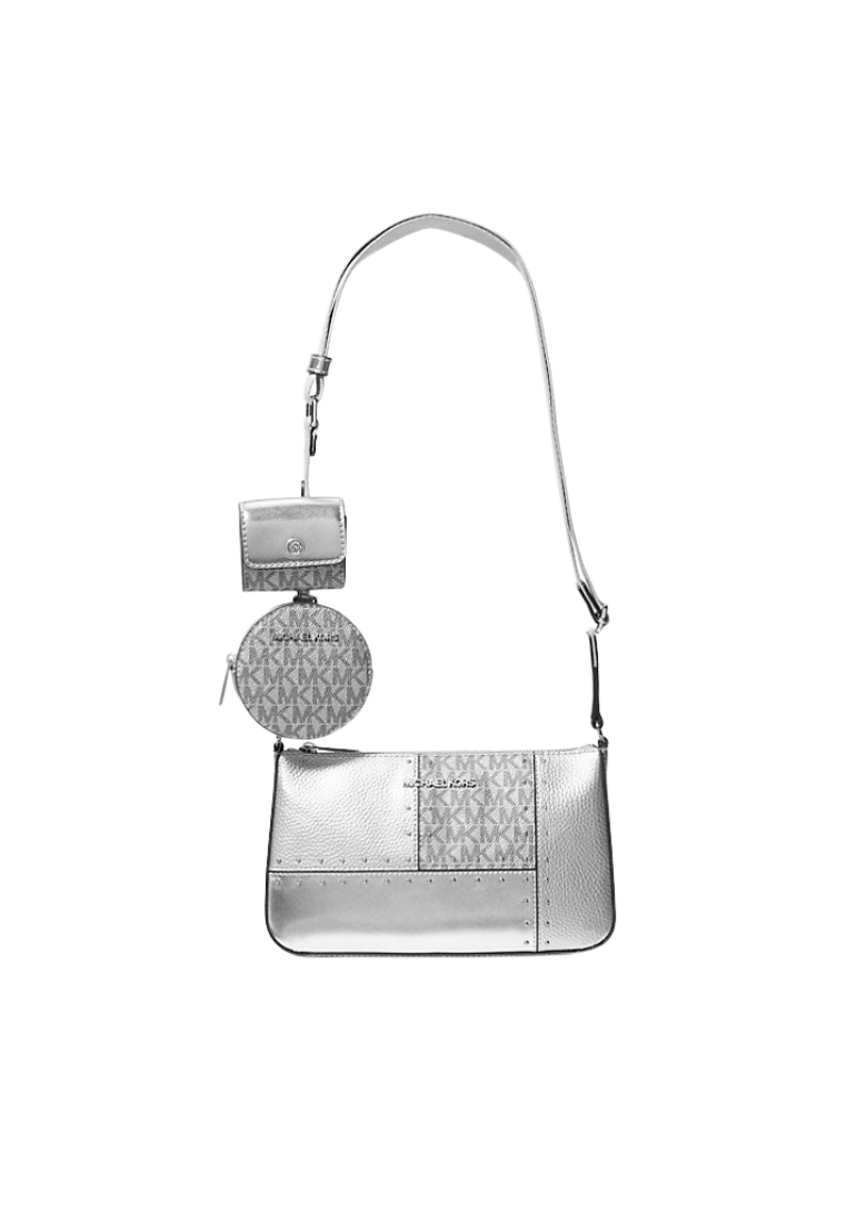 Michael Kors Jet Set Travel Crossbody Bag Small Metallic Patchwork And Signature Logo In Silver 35R5Stvc1M