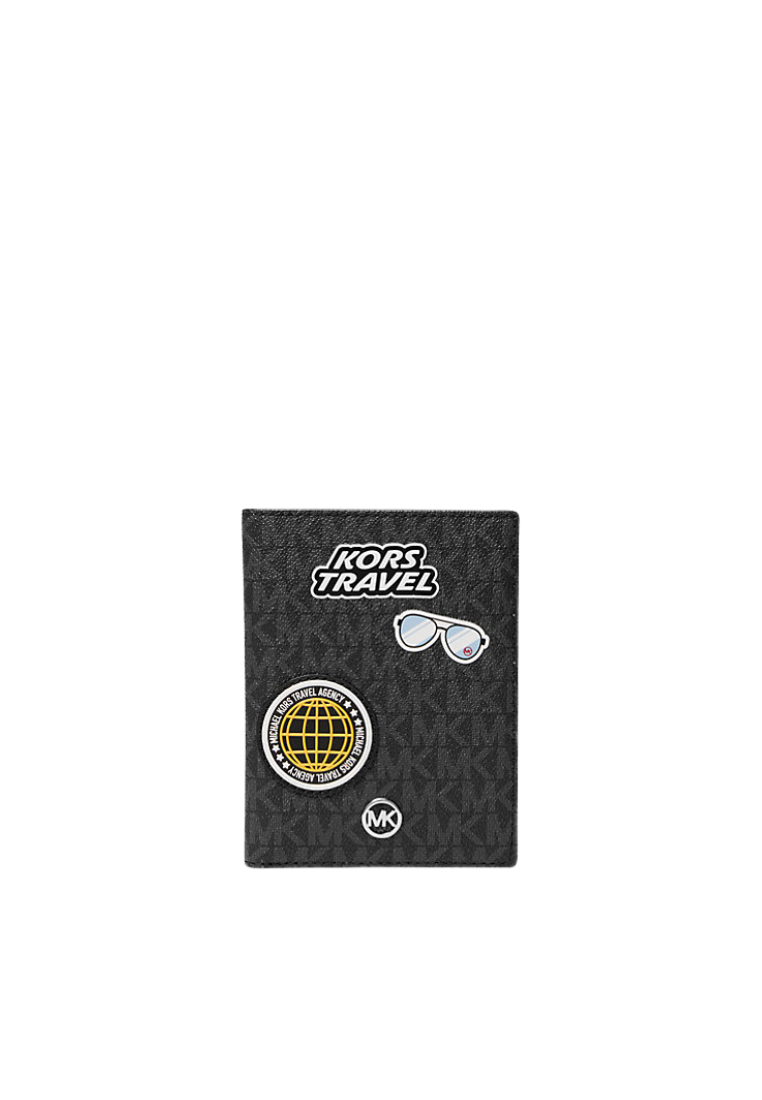 Michael Kors Jet Set Travel Medium Embellished Signature Logo Passport Card Case In Black 35R5STVN8B