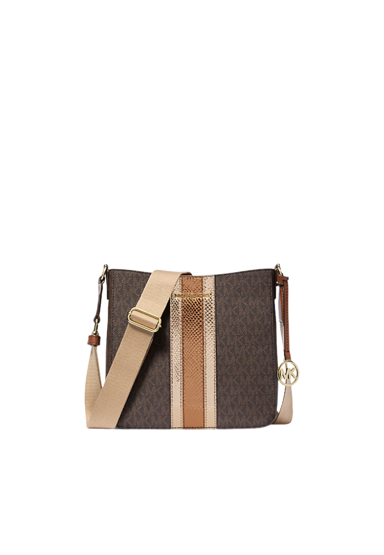 Michael Kors Jet Set Travel Small Signature Logo and Metallic Messenger Bag In Brown 35F4GTVC5I