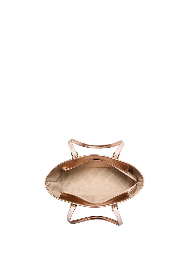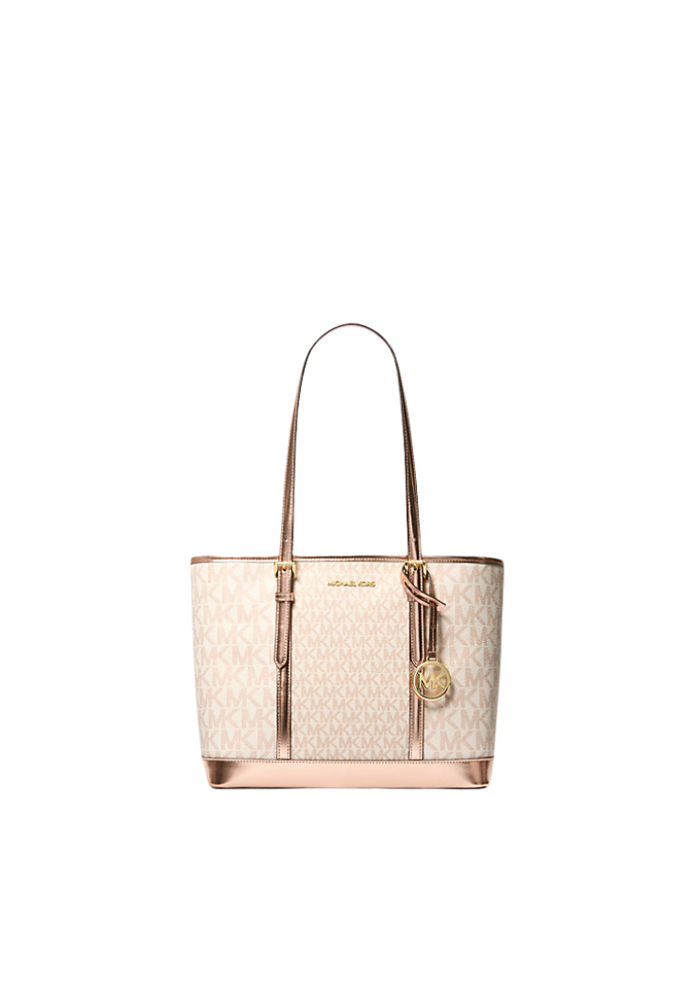 Michael Kors Jet Set Travel Tote Bag Small Metallic Logo Top-Zip In Rose Gold 35F4Gtvt1M