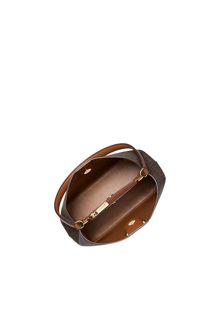 Michael Kors Pratt Medium Signature Logo and Metallic Shoulder Bag In Brown 35F4G3FS2B