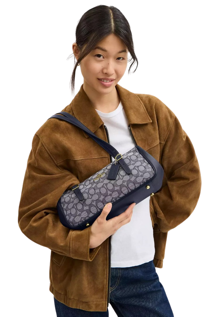 ( PREORDER ) Coach Asher In Signature Jacquard Shoulder Bag In Midnight Navy CBJ03