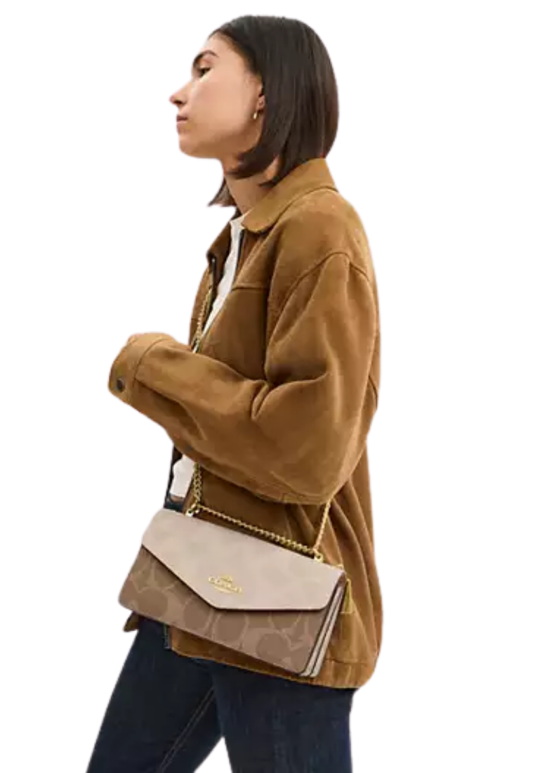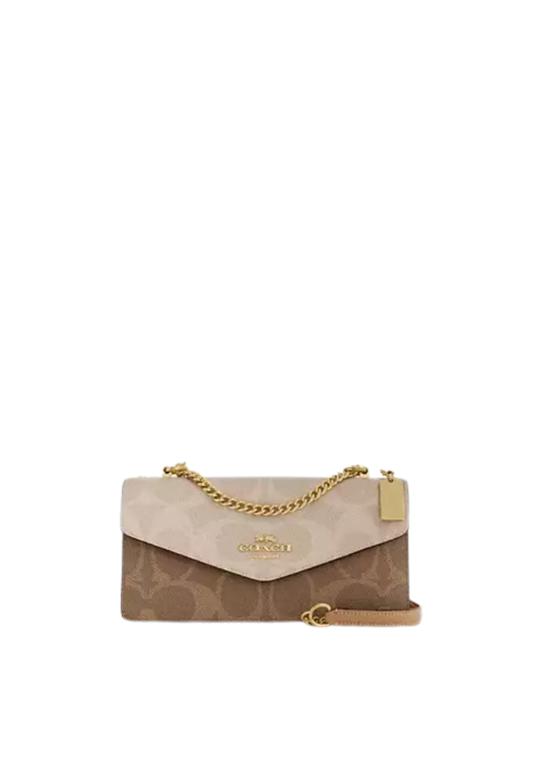 ( PREORDER ) Coach Klare Envelope In Blocked Signature Canvas Crossbody Bag In Gold Sand Tan CBI99