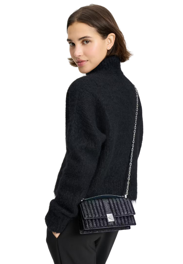 ( PREORDER ) Kate Spade Deco Quilted Glitter Suede Mini Flap Chain Crossbody Bag In Navy Multi KJ654