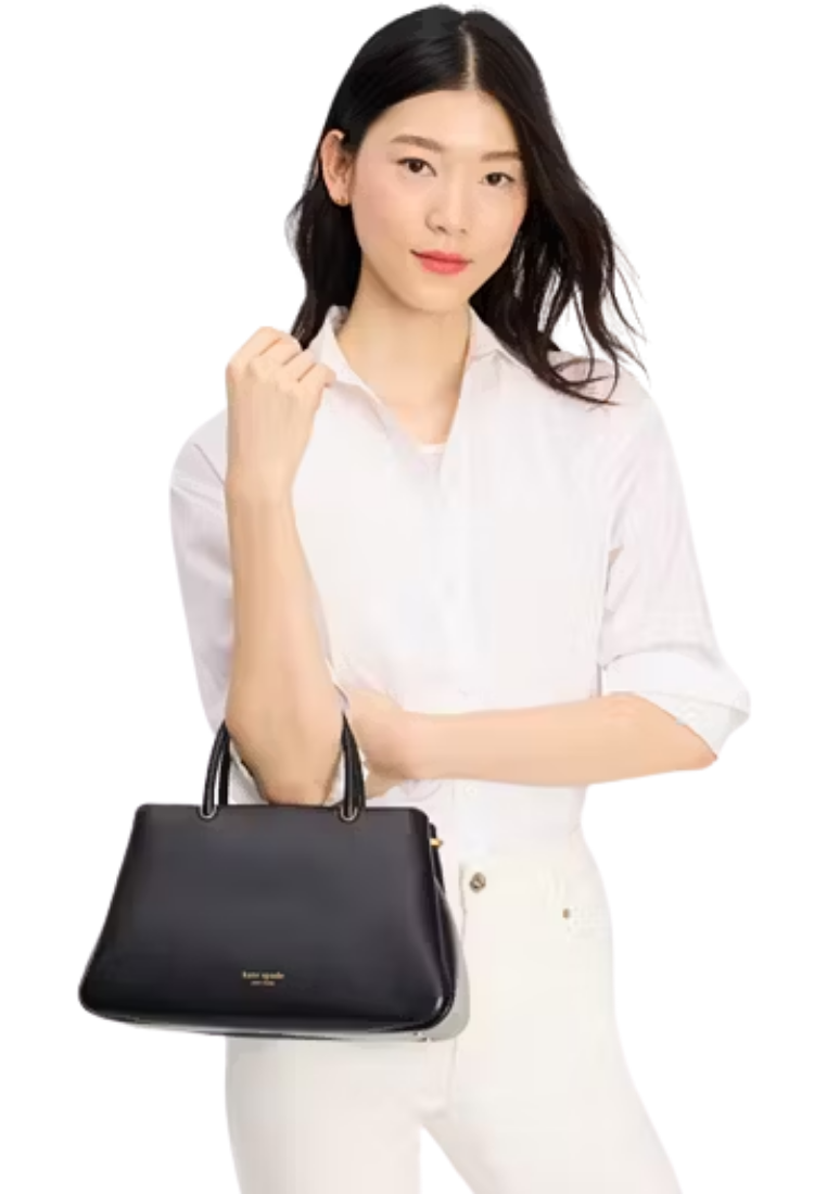 ( PREORDER ) Kate Spade Grace Fine Grain Leather Medium Satchel Bag In Black KF834