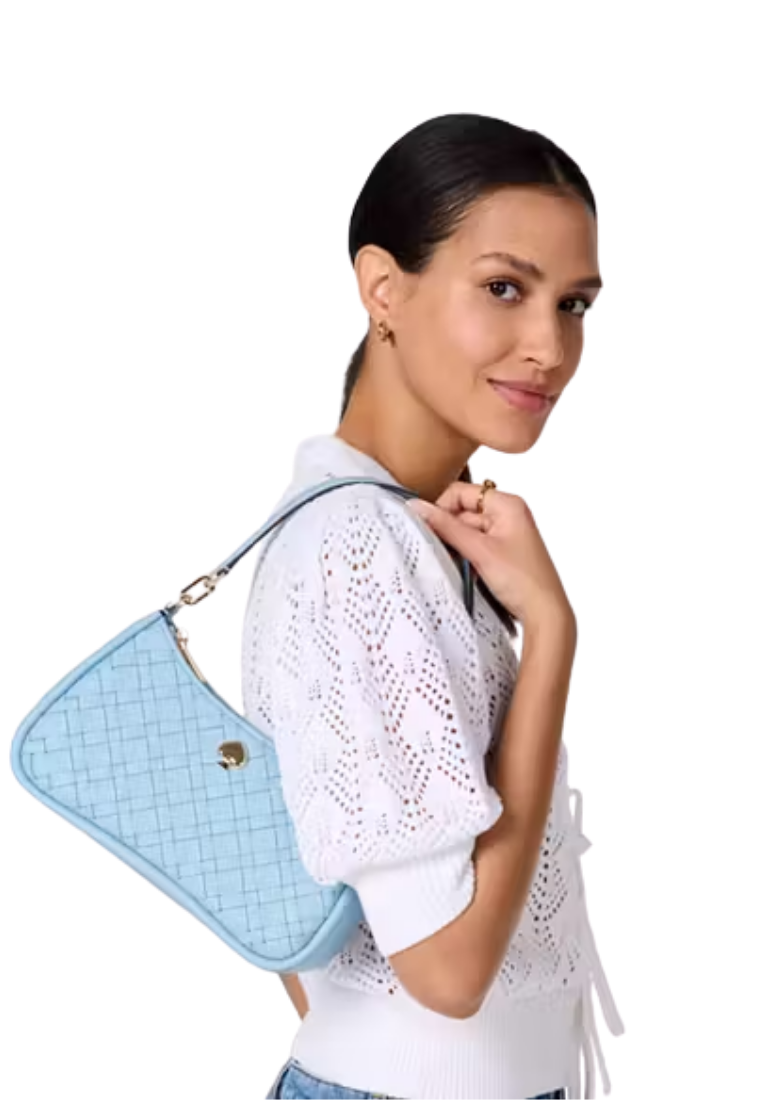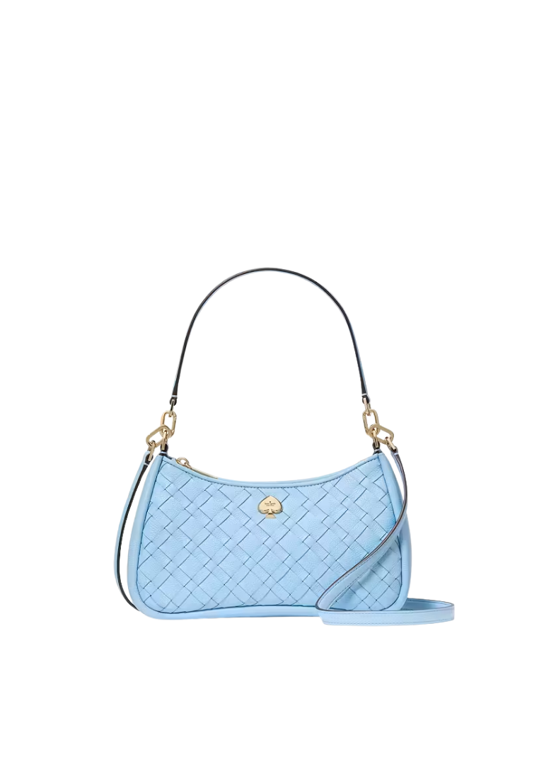 ( PREORDER ) Kate Spade Kayla Woven Leather Small Convertible Shoulder Bag In Montauk Blue KL026