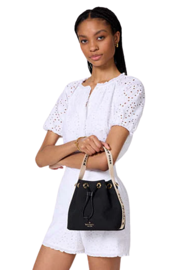 ( PREORDER ) Kate Spade Kip Canvas Bucket Bag In Black KL048