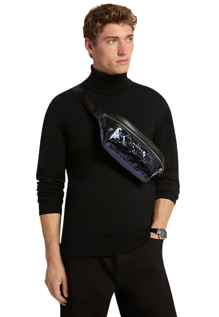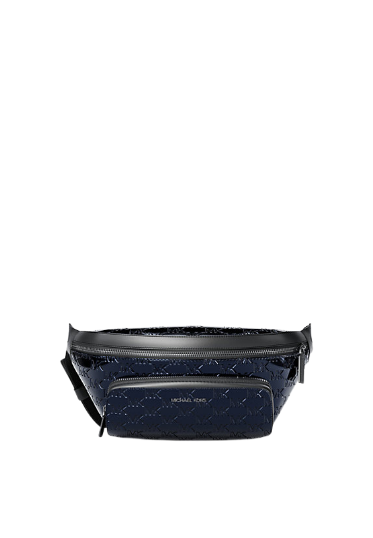 ( PREORDER ) Michael Kors Cooper Medium Metallic Logo Debossed Utility Sling Pack In Navy 37F5LCOY9O