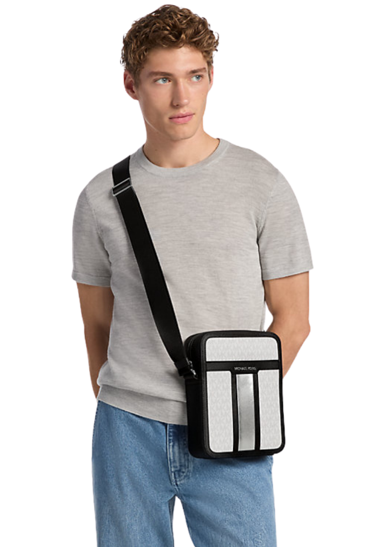 ( PREORDER ) Michael Kors Cooper Signature Logo Stripe Flight Bag In Silver 37F5LCOC6B