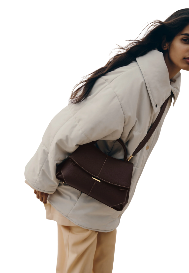 Polène branded clasp and organically designed bottom studs bearing the Polène logo.