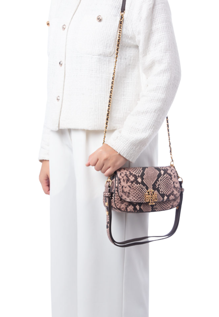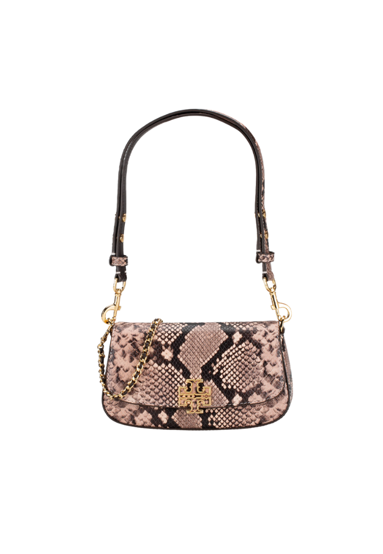 Tory Burch Britten Snake Embossed Convertible Crossbody Bag In Shell Pink 162837